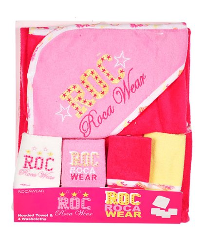 Rocawear Girls "Pure, Make bathtime more fun with this Rocawear towel and washcloth set. The towel has a hood corner with logo embroidery; the matching washcloths feature logo embroidery as well. All items are made of cotton-rich knit terry for baby's comfort during and after her bath. 80% Cotton, 20% Polyester Machine Wash Warm Made in China